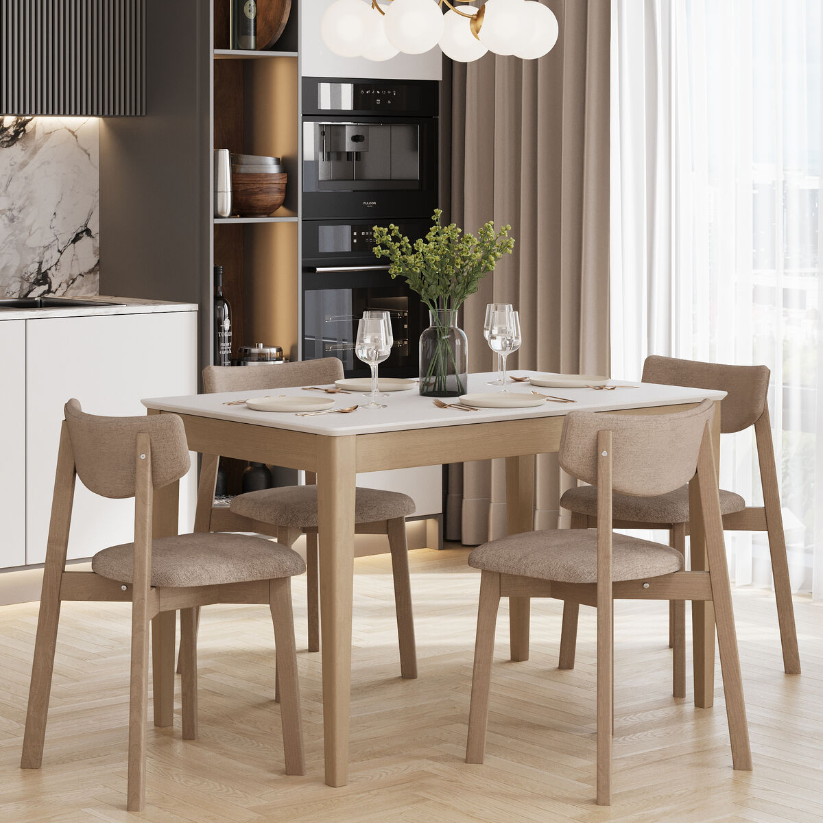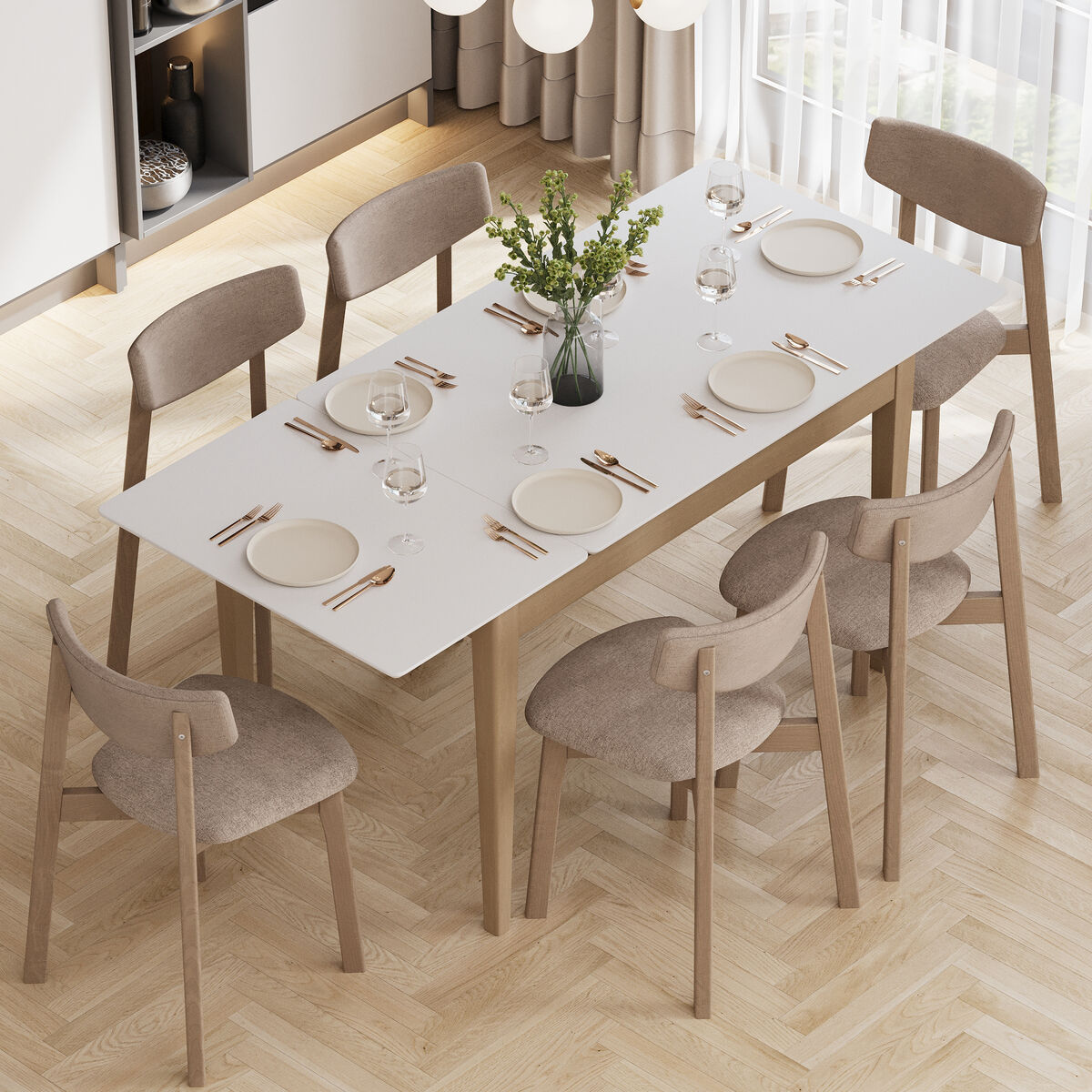 Надежный раздвижной механизм c деревянными направляющими скрыт внутри и позволяет быстро трансформировать стол для большой компании.