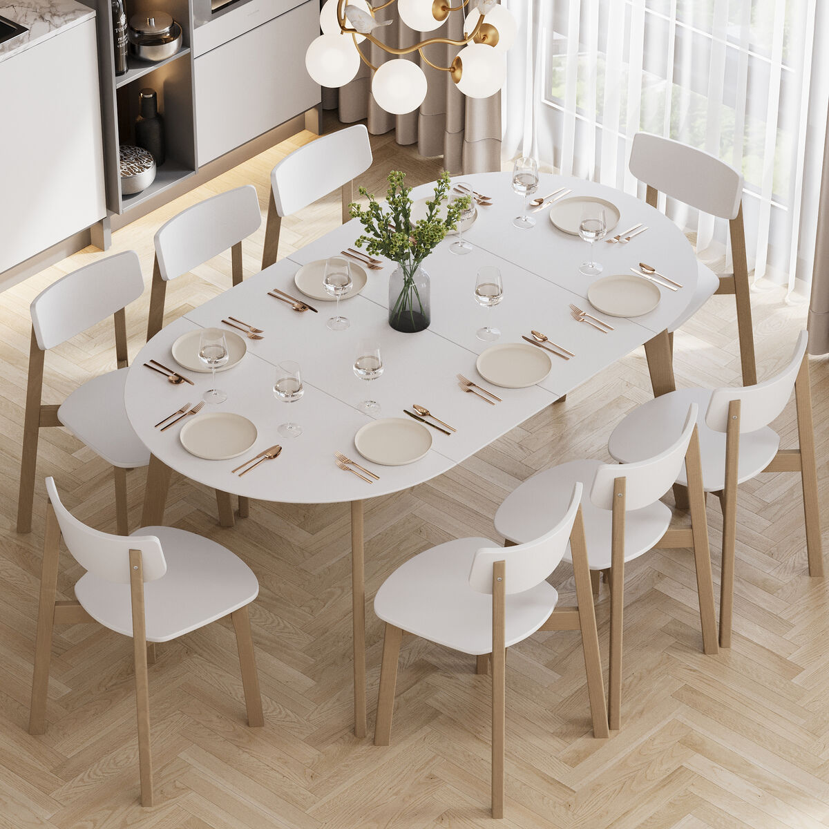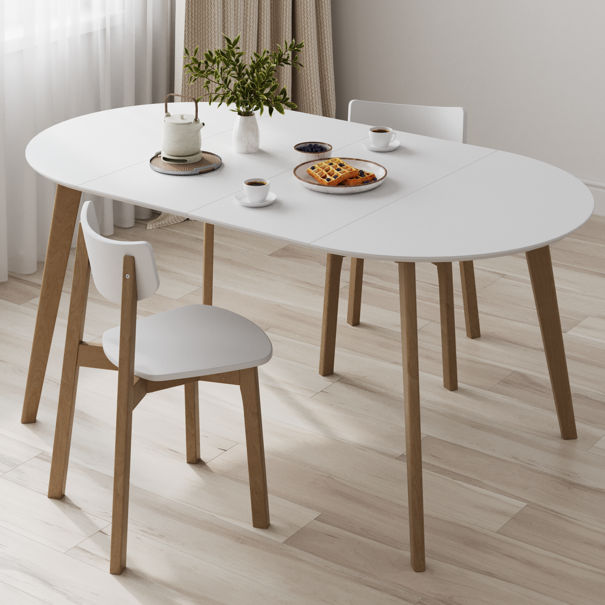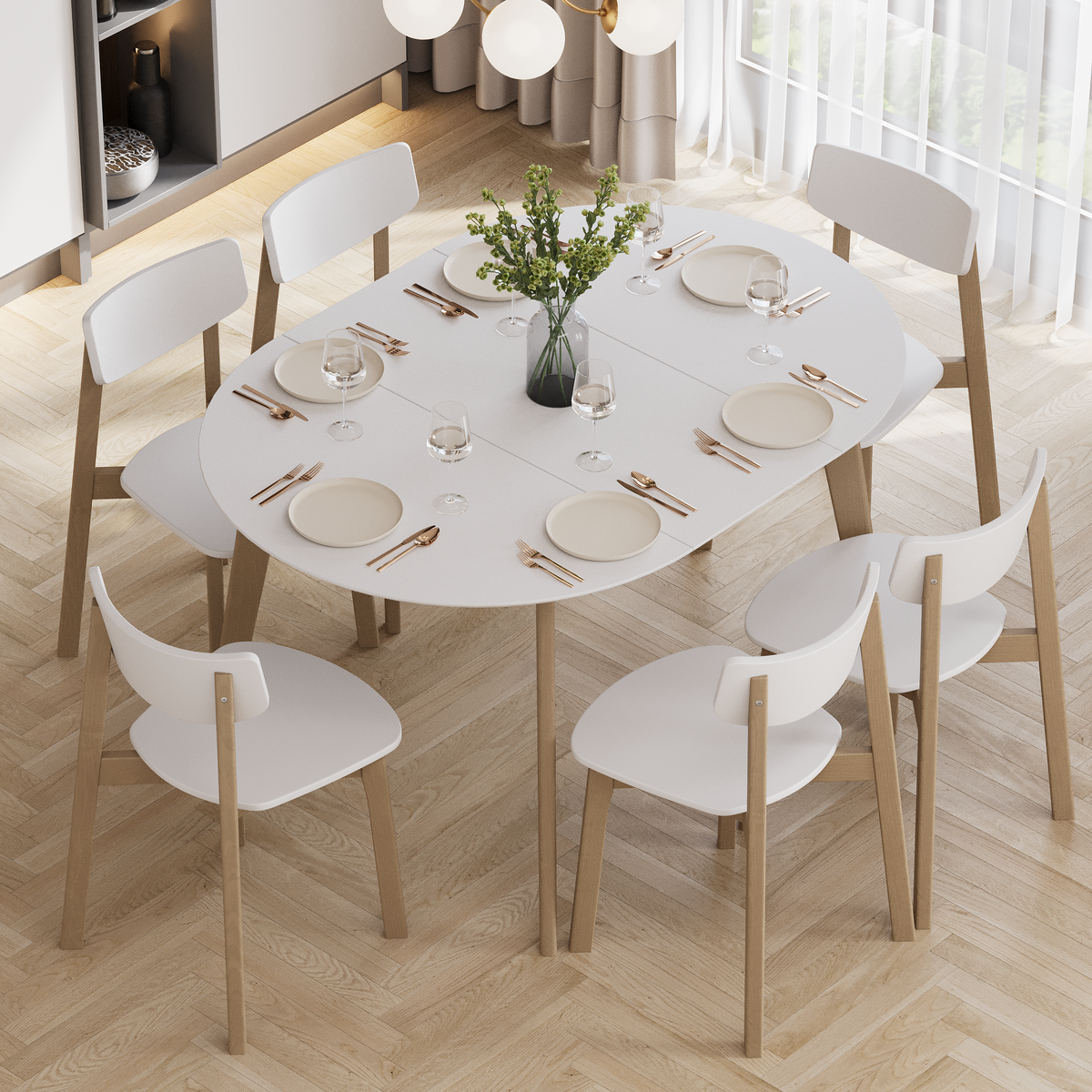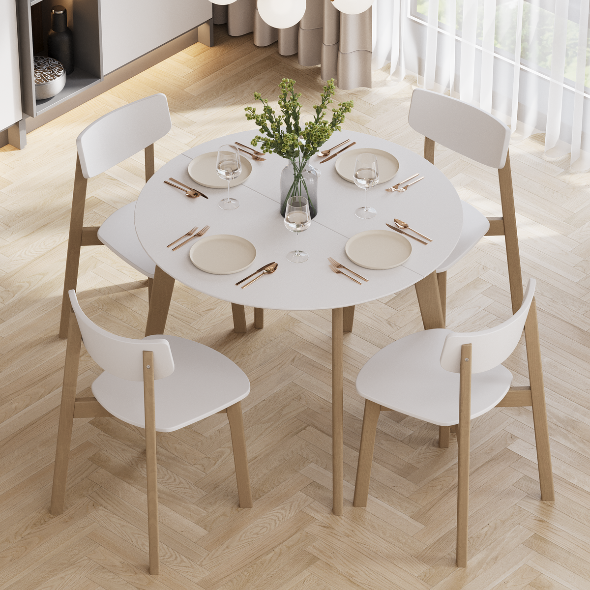 Изящное сочетание круглой столешницы и строгих прямых опор. Настоящая скандинавская функциональность!