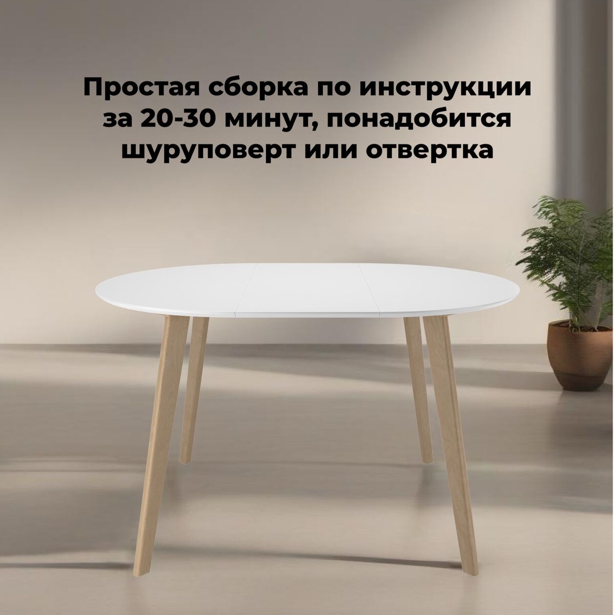 Впервые на мебельном рынке метровый круглый раскладной стол с механизмом, размещенным внутри.