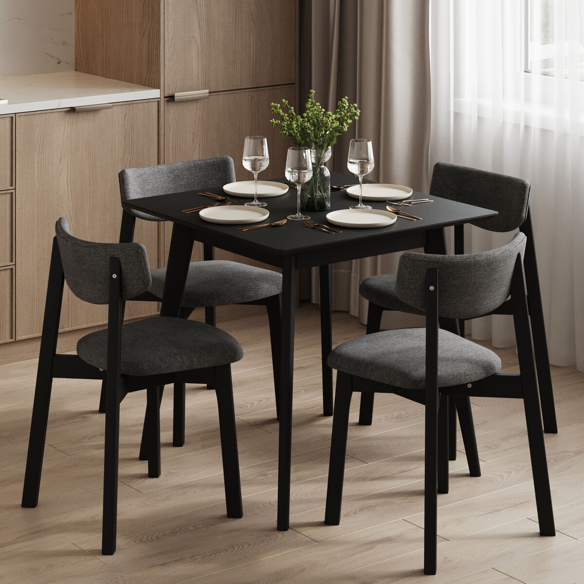 Строгая квадратная столешница с закругленными краями и изящные прямые опоры.